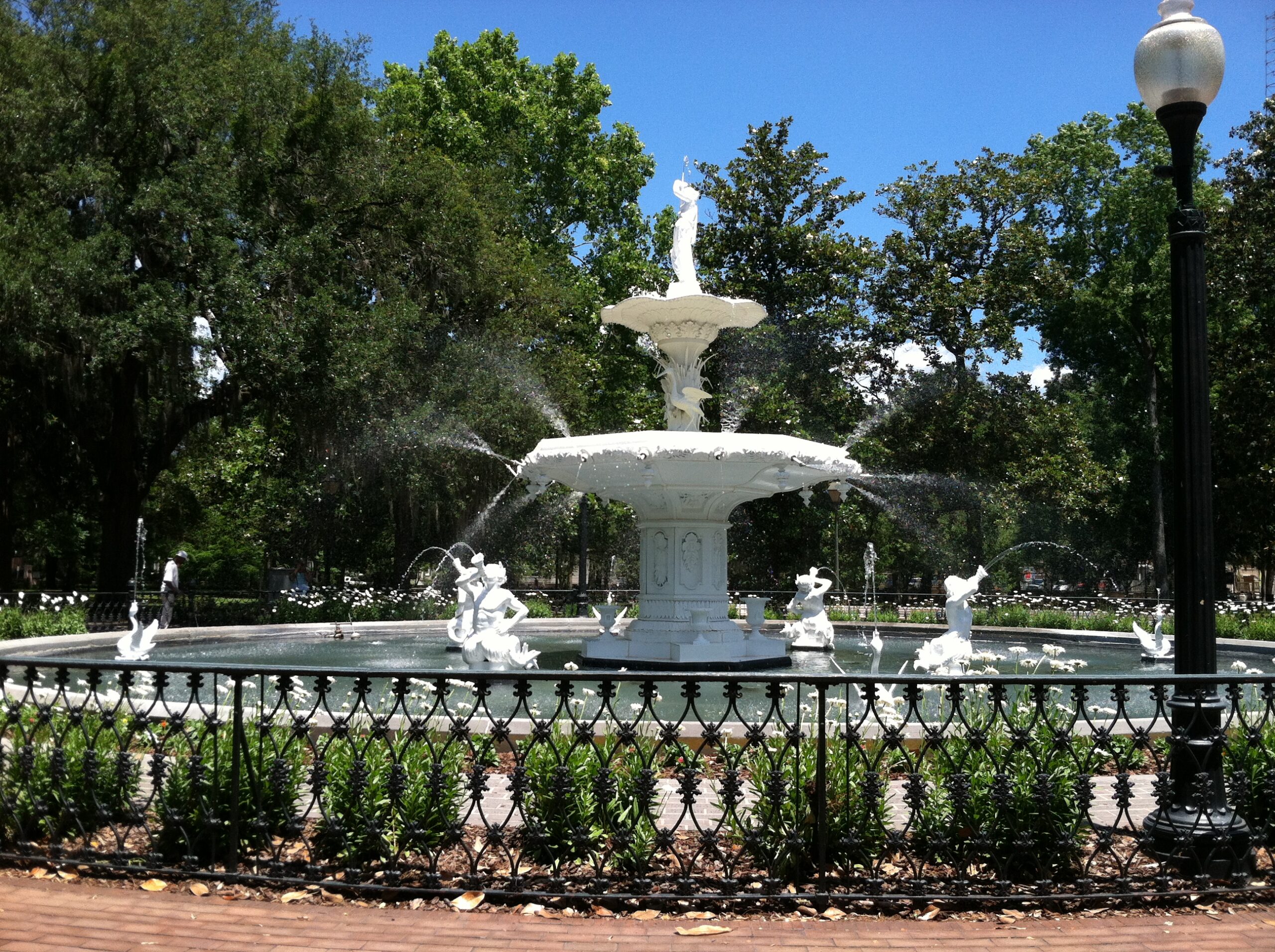 After an hour or two of swimming at the beach and walking around the pier, we drove in to downtown Savannah to check out the historic district. Savannah is absolutely charming with its parks and squares centered around monuments. I particularly enjoyed the arboretum at Forsyth Park, with its rich collection of greenery and trees, fountains and the occasional sidewalk musician.
